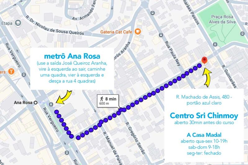 🏛️ Salvo se outro endereço foi informado nas mensagens de whatsapp, o curso será no Centro Sri Chinmoy, R. Machado de Assis, 480.