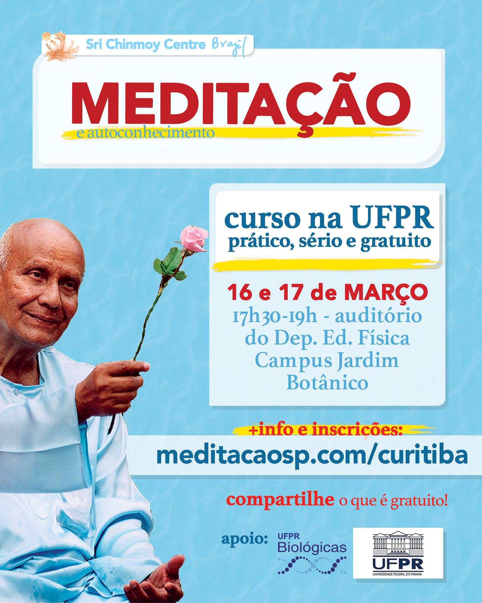 O próximo curso de meditação em Curitiba será na UFPR, aberto a toda a comunidade, no auditório do Departamento de Educação Física, dias 16 e 17 de março de 2026, 17h30-19h.